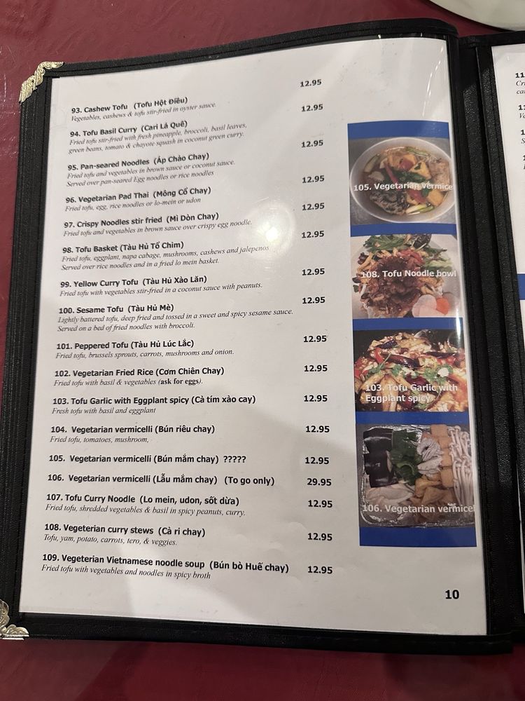 Com chien chay. Fried tofu with basil and vegetables. Eggs available upon request.
