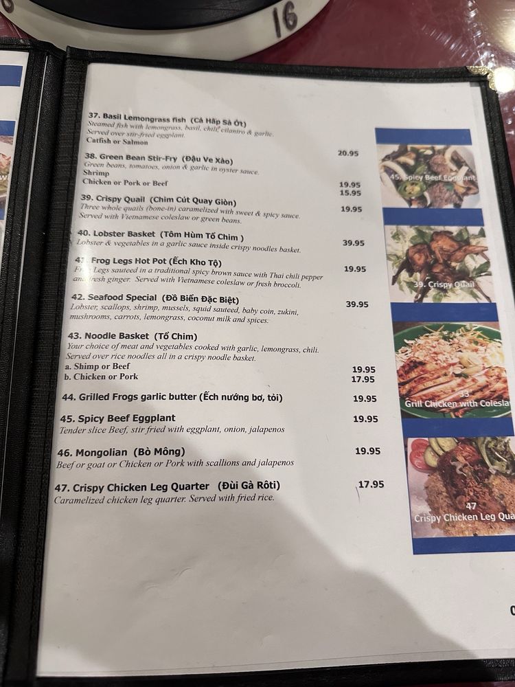 To chim. Comes with choice of meat and vegetables cooked with garlic, lemongrass, chili. Served over rice noodles all in a crispy noodle basket.