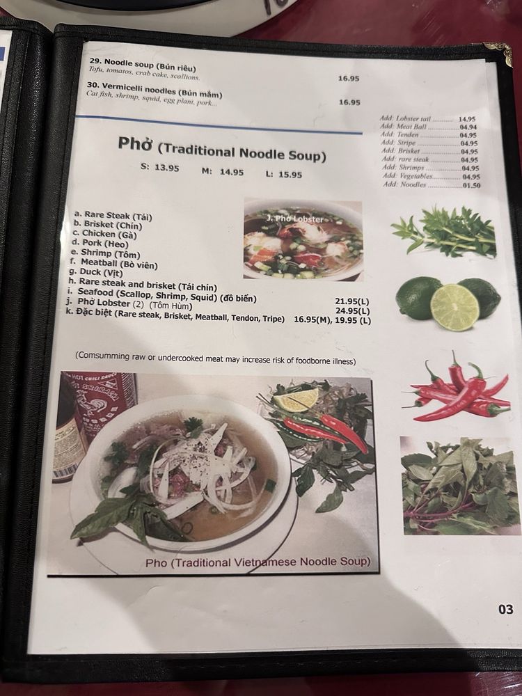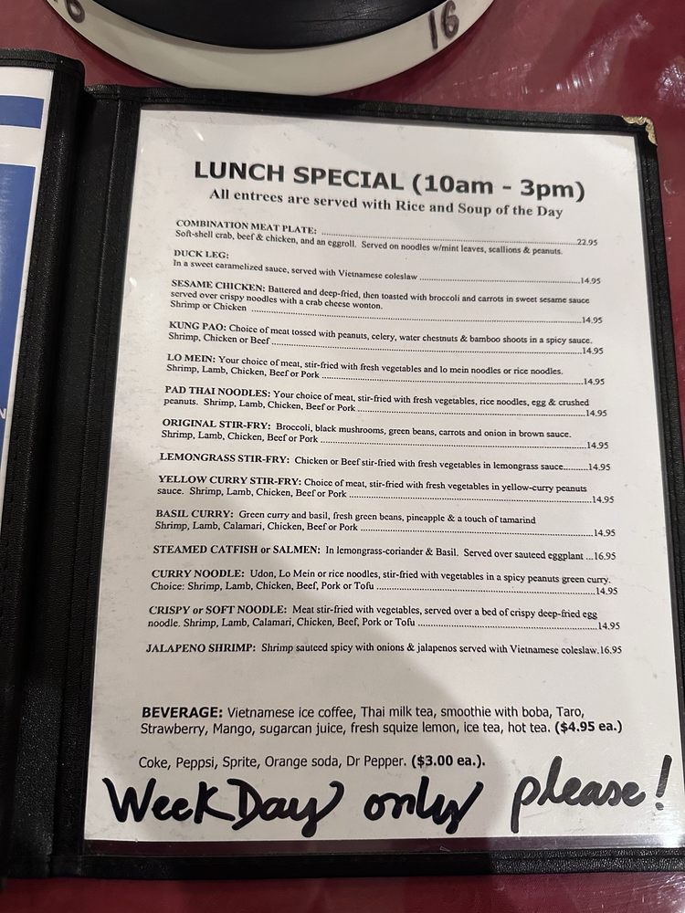 Tu's Kitchen in Broomfield, Colorado offers a unique Vietnamese dining experience, with a focus on fresh and delicious dishes. The menu includes a variety of appetizers such as Cup of Soup Chen Sup and Fresh Spring Rolls, as well as hearty Vietnamese soups like Spicy Beef and Oxtail Soup. The Vietnamese Salad section features options like Vietnamese Noodle Bowl and Lemon Basil Salad. Customers rave about the friendly staff, quick service, and standout dishes like the beef lemon salad and oxtail curry soup. The clean and welcoming atmosphere, along with the ample parking, make Tu's Kitchen a must-visit for Vietnamese cuisine lovers in the area.